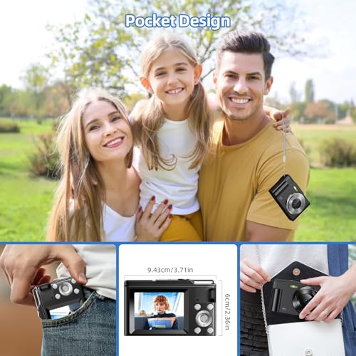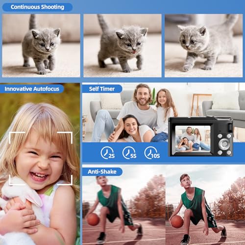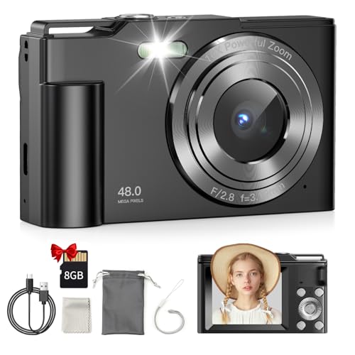 Cámara digital FHD de 48 MP y 1080P: captura sin esfuerzo impresionantes imágenes de 48 MP y videos 1080P de ultra alta resolución con el último sistema de medición CMOS. Automáticamente proporciona colores naturales y vibrantes y detalles claros sin necesidad de ajustes complejos. Grabar tus momentos más emocionantes e inolvidables nunca ha sido tan fácil.
