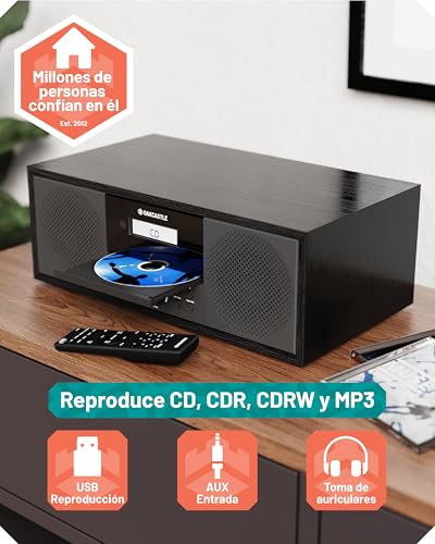 Disfruta de tus discos favoritos con el reproductor de CD o conecta tus dispositivos con el Bluetooth integrado. Perfecto para los amantes de la música, sus altavoces de 60W ofrecen una experiencia sonora potente y envolvente. Además, incluye un mando a distancia y ajustes de EQ personalizados para optimizar tu experiencia.