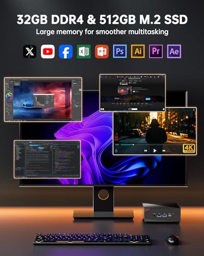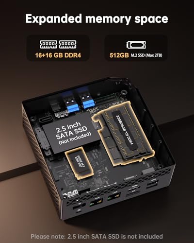 32GB DDR4 Doble Canal + 512GB M.2 SSDEquipada con 32GB de RAM DDR4 en doble canal, ampliable hasta 64GB, y con un SSD M.2 de 512GB (ampliable hasta 2TB), esta Mini PC garantiza carga de datos rápida y eficiente. Además, admite expansión SSD/HDD externa de hasta 2TB. Perfecta para tus archivos del sistema y más juegos.
