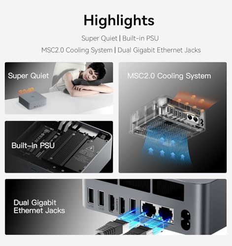 El Beelink EQR6 Mini PC transforma tu espacio de trabajo en un ambiente silencioso con su ventilador ultra silencioso, permitiéndote concentrarte sin interrupciones. Gracias a su fuente de alimentación incorporada de 85W, dile adiós al caos de cables y disfruta de un área de trabajo despejada y eficiente.