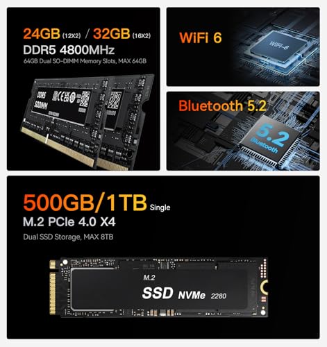 Equipado con el potente procesador AMD Ryzen 9 6900HX, el Beelink Mini PC EQR6 está diseñado para manejar todas tus aplicaciones de oficina con facilidad, desde PS y PR hasta la suite de Office. Con 24GB de RAM y un SSD M.2 PCIe4.0 de 500GB, este mini ordenador garantiza una carga rápida de datos y almacenamiento eficiente.