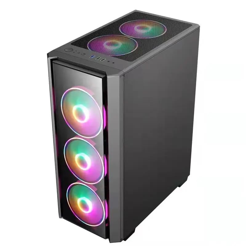 Disfruta de una estética inigualable con nuestra elegante caja gaming negra de vidrio templado resistente. Viene equipada con tres ventiladores RGB frontales regulables en 58 modos, un ventilador LED RGB trasero y una fuente de alimentación de 600W. Con Windows 11 Professional de 64 bits preinstalado, cada computadora es cuidadosamente montada y probada por nuestros técnicos expertos. Contamos con opciones de hardware personalizables y ofrecemos una garantía de 24 meses.