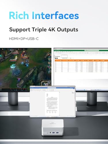 Imagina trabajar con la comodidad de múltiples pantallas. La UN1250 te permite conectar hasta tres monitores Ultra HD simultáneamente a través de sus puertos HDMI, DisplayPort y USB-C, optimizando así tu espacio de trabajo. Además, sus numerosos puertos, incluyendo Ethernet 2.5G, Wi-Fi 6 y Bluetooth 5.3, aseguran una conectividad impecable para todo tipo de aplicaciones. En resumen, la UN1250 no solo es compacta y potente, sino también ideal para un entorno de trabajo moderno y dinámico.