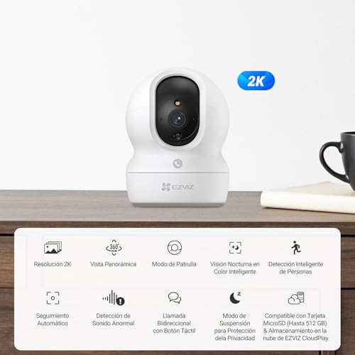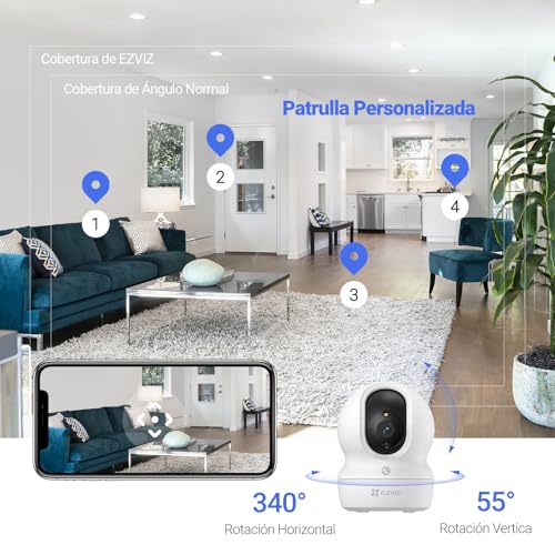¡Potencia tu seguridad con EZVIZ CP1! Esta cámara de vigilancia WiFi interior ofrece una impresionante resolución 2K y protección de 360° con patrullaje personalizado. La cámara graba en Super HD 3MP, eliminando puntos ciegos gracias a su exclusiva función de patrulla, adaptable a las características únicas de tu hogar.