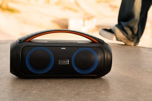 ¡Disfruta de horas de música sin interrupciones! La batería de gran capacidad se adapta al volumen y al uso de las luces LED, para que nada detenga tu diversión. Conecta tus dispositivos fácilmente a través de Bluetooth, cable o USB y dale rienda suelta a tu playlist favorita.