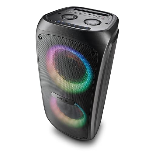 Lleva tu experiencia a otro nivel con nuestra tecnología TWS. Podrás emparejar dos altavoces simultáneamente y crear un sonido envolvente gracias al True Wireless Stereo. Y para que la diversión no pare, las luces LED RGB en 7 modos diferentes serán el toque perfecto para cualquier fiesta o evento, además de contar con doble entrada de micrófono para tus sesiones de karaoke.