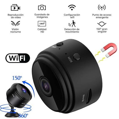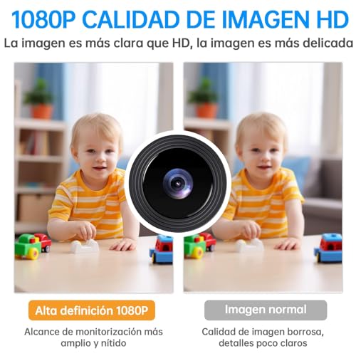 Cámara espía miniatura 1080P recién actualizada: Esta increíble cámara de vigilancia wifi interior graba en resolución Full HD 1080P con un amplio ángulo de visión de 150° a 30 fotogramas por segundo. La calidad de imagen es excepcionalmente realista y rica en detalles, ideal para capturar cada momento con precisión y claridad.