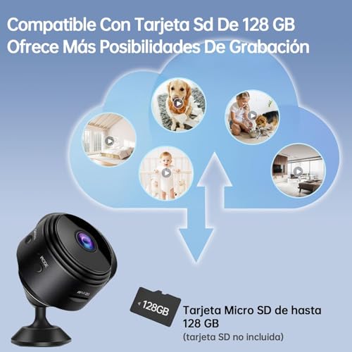 Máxima seguridad con detección de movimiento: Ajusta la sensibilidad del sensor desde la app y recibe alertas instantáneas cuando se detecte movimiento. Los LED infrarrojos aseguran imágenes nítidas incluso en baja luz. Además, graba de forma remota, reproduce y almacena en tarjetas micro SD de 16G a 128G (no incluidas).