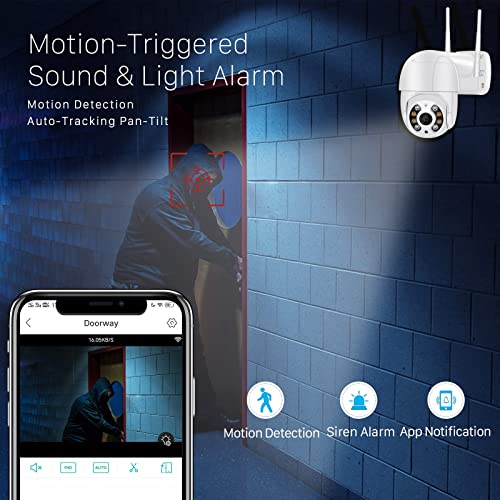 ¿Le gustaría asegurar su hogar con una tecnología avanzada y fácil de usar? Nuestra cámara de vigilancia wifi para exteriores es su mejor aliada. Con seguimiento automático horizontal y detección de movimiento, puede rastrear y alertar sobre cualquier intruso con precisión. Además, la función de ajuste de sensibilidad de la alerta ayuda a evitar falsas alarmas causadas por insectos o condiciones meteorológicas adversas.