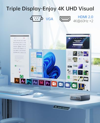 Admite hasta tres pantallas 4K UHD, ideal para una experiencia visual inmersiva. Compacta y ligera, la NiPoGi CK10 puede montarse fácilmente detrás de un monitor y viene con todo lo necesario para empezar. ¡Haz espacio para la innovación con NiPoGi!