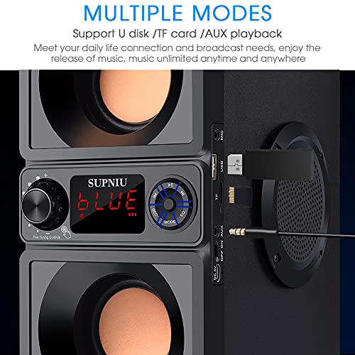 La conectividad es sencilla y eficiente gracias al último chip Bluetooth 5.0, con un alcance de hasta 30 metros. Reproduce música desde tu smartphone u otros dispositivos sin retrasos. También puedes conectar tu PC, TV y más a través de los conectores de audio incluidos. Ajusta agudos y bajos para un sonido personalizado y disfruta de funciones como karaoke cuando conectes un micrófono.