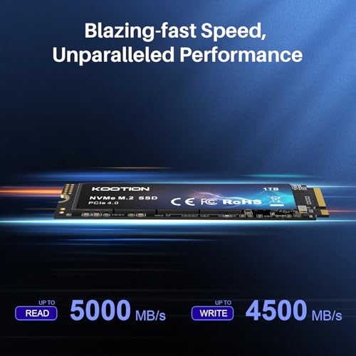 RENDIMIENTO EXCEPCIONAL: Con soporte de PCIe 4.0, el SSD M.2 2280 NVMe ofrece impresionantes velocidades de lectura de hasta 5000MB/s y escritura de hasta 4500MB/s. Esta rapidez transforma radicalmente tu PC, haciéndolo más eficiente y potente.