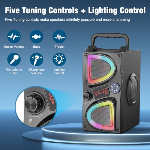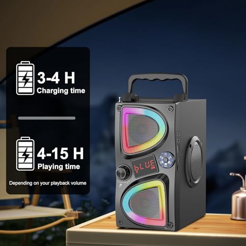 Altavoz Portátil MultifuncionalNuestro boombox SUPNIU cuenta con tecnología Bluetooth 5.0 para una conexión rápida a cualquier dispositivo. Equipado con dos baterías de 4000 mAh, su pantalla muestra el nivel de energía restante para que nunca se quede sin carga inesperadamente. Ideal para usar en cualquier lugar, en cualquier momento.