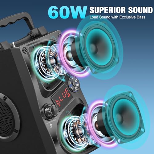 Altavoz Bluetooth de Alta PotenciaEl altavoz Bluetooth SUPNIU ofrece 60W de potencia de salida con los últimos 4 controladores: 2 woofers y 2 tweeters. Disfrute de una proyección de sonido excepcional que hace que su música y películas cobren vida con una claridad y profundidad inigualables. Experimente una calidad de audio como nunca antes.