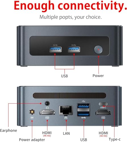 Con su GPU inteligente y compatibilidad de pantalla triple, experimentarás gráficos Ultra HD 4K y podrás conectar hasta tres monitores, ideal para aumentar tu productividad. La conectividad rápida está garantizada con WiFi6 y Ethernet Gigabit. Además, la mini PC incluye múltiples puertos como HDMI, USB 3.0, Type-C, entre otros.