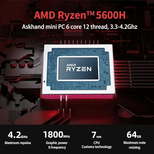 Descubre la increíble Mini PC AMD Ryzen 5 5600H de alto rendimiento de AskHand. Esta potente mini computadora está equipada con un procesador AMD R5 5600H de hasta 4,2 GHz, con 6 núcleos y 12 hilos, lo que garantiza un aumento del 20% en rendimiento comparado con el Ryzen 5 5600U. Además, cuenta con gráficos AMD Radeon para experiencias visuales excepcionales.