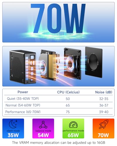 Lleva tu experiencia más allá con la interfaz Oculink para conexiones externas ultrarrápidas y la capacidad de soportar hasta 4 pantallas en 4K/8K a través de diversos puertos. Adaptable a tus necesidades, el mini PC Nucbox K8 Plus ofrece tres modos de rendimiento personalizables: silencioso, equilibrado y máximo rendimiento. ¡Prepárate para llevar tu experiencia de juego y trabajo a otro nivel!